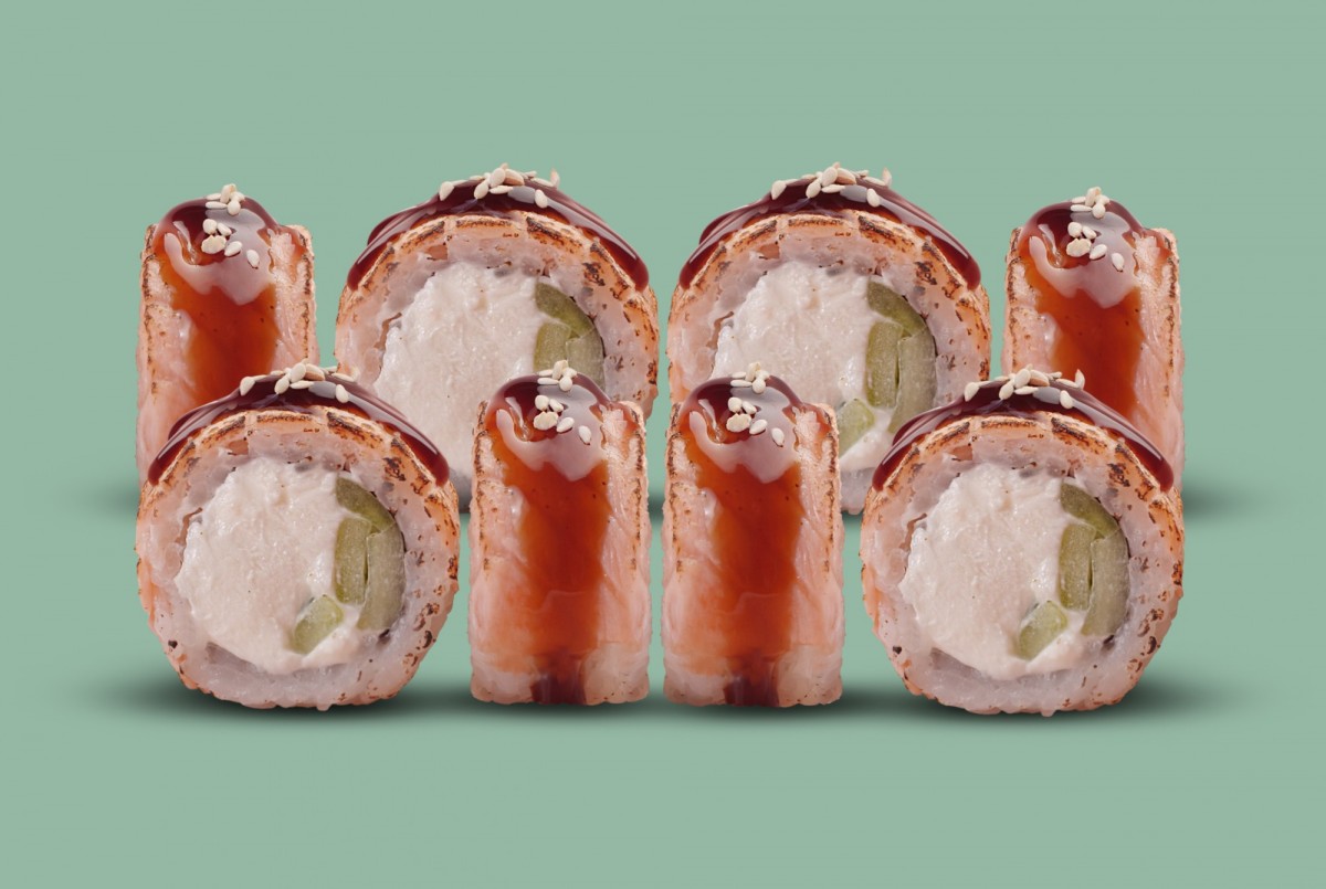Мы решили объединить всеми любимые темпурные роллы с не менее любимыми спайси гунканами. Великолепный жареный ролл с начинкой из сливочного сыра и хрустящих огурчиков и вкуснейшей пикантной шапочкой с охлажденным лососем, спайси соусом. Украшен зеленым луком и соусом унаги.